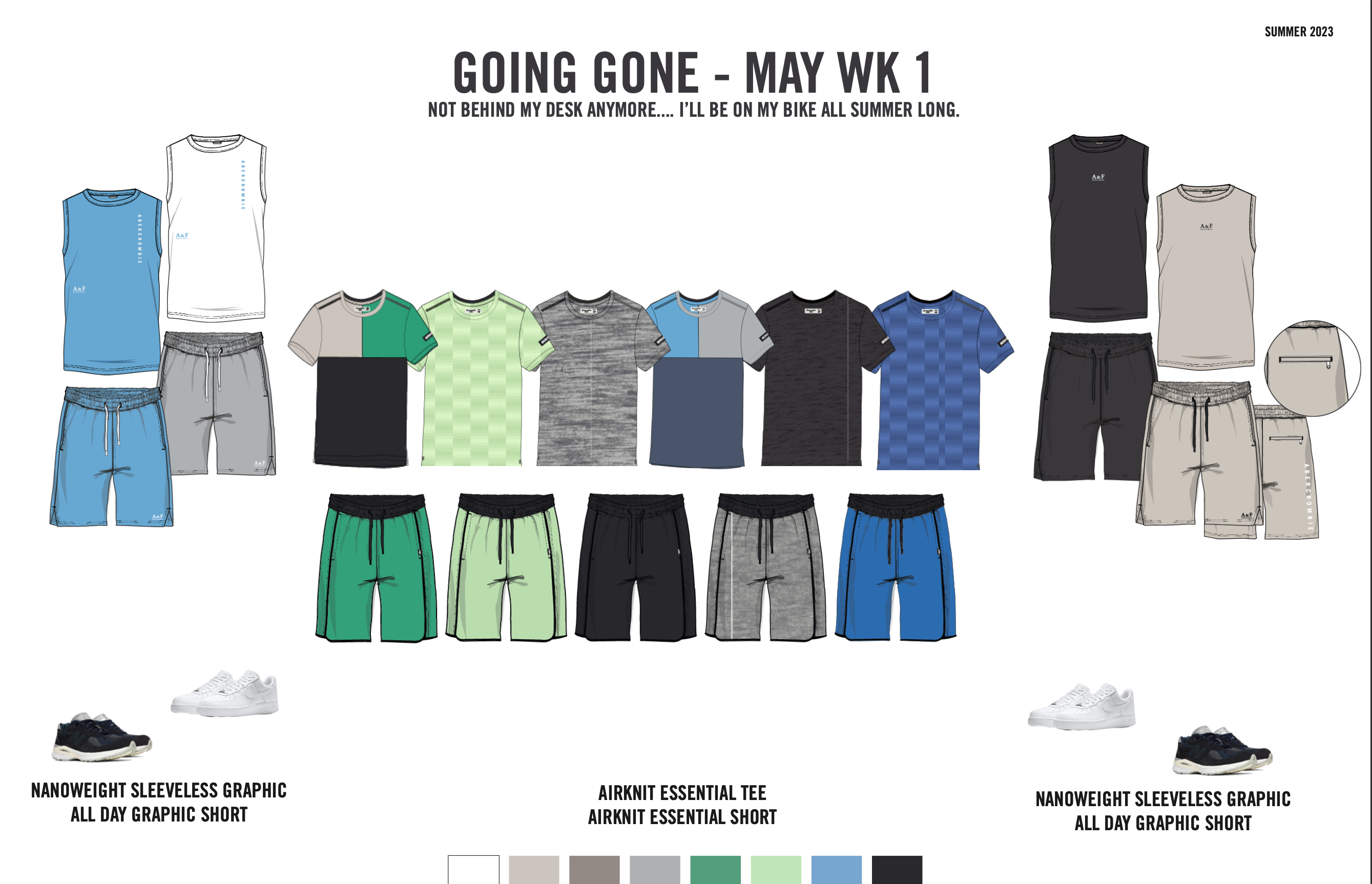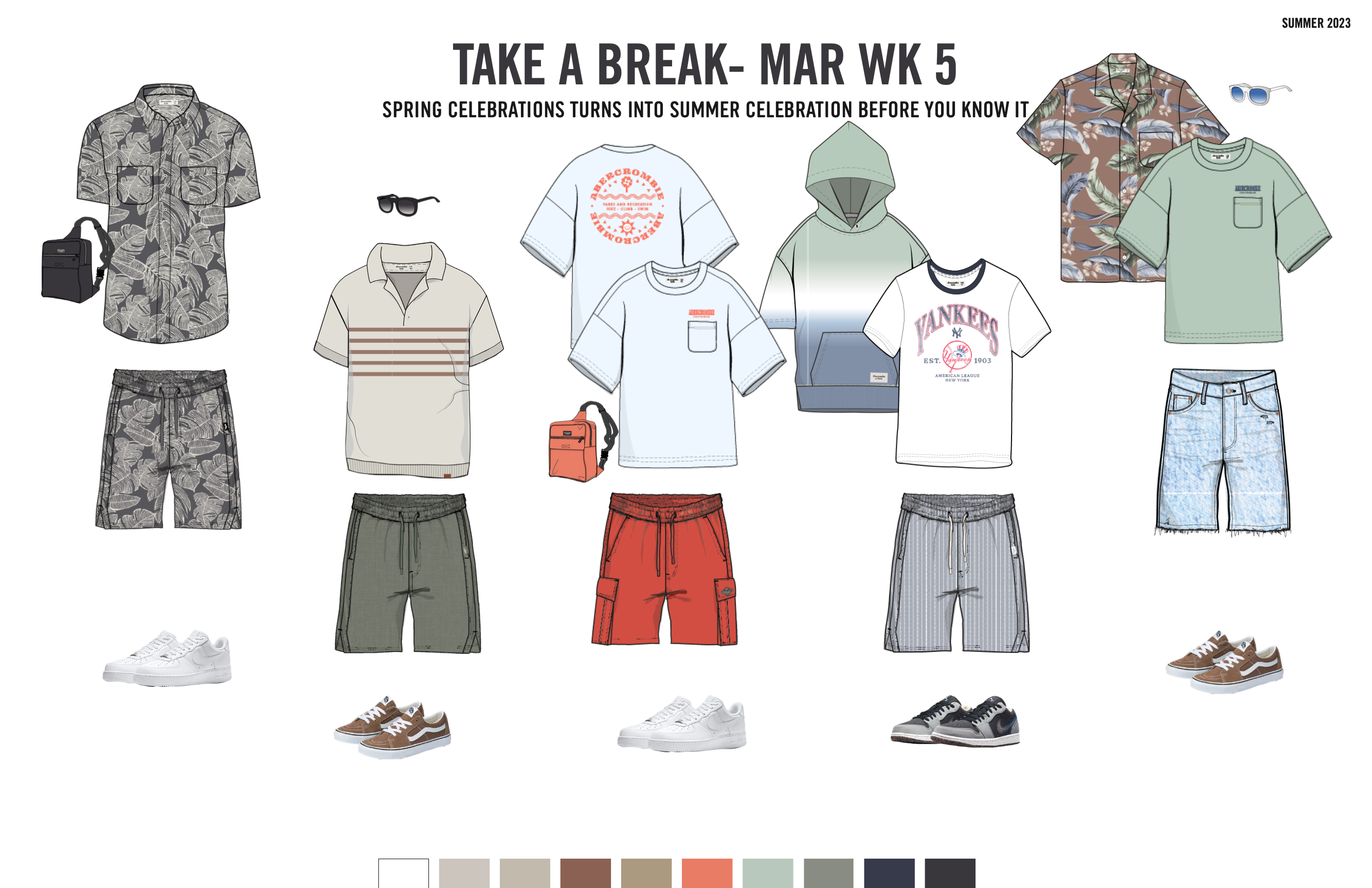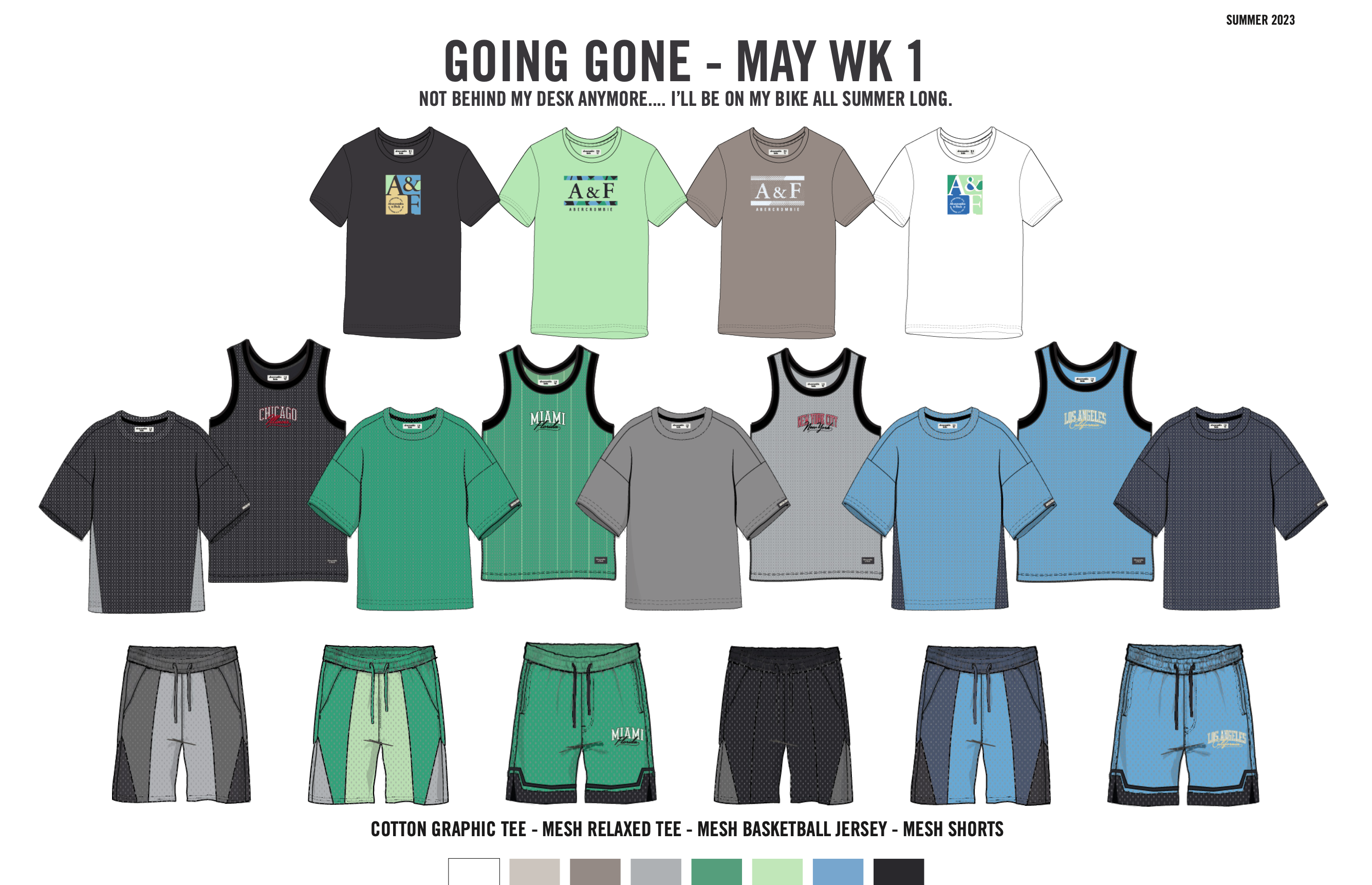 our concept team equipped us with relevant macro trends that are woven throughout the themes, key items, outfits and assortment. the heavy hitters we’re passionate about are licensing, sports jerseys, pull on shorts and matchbacks.