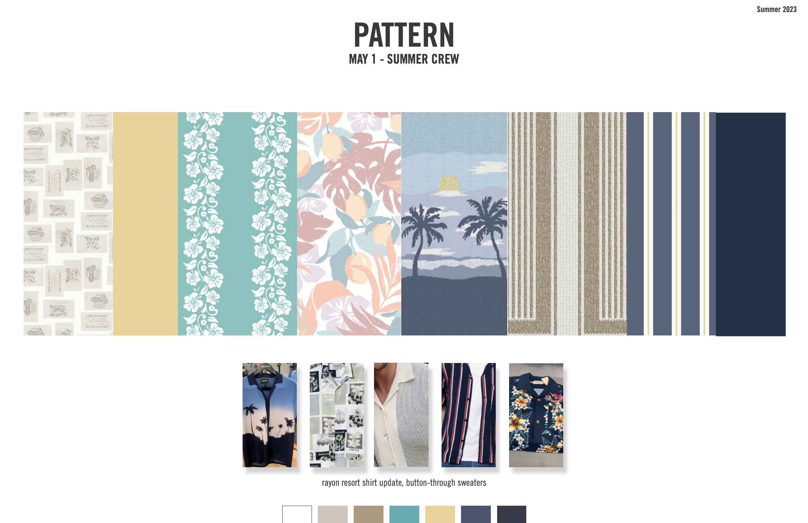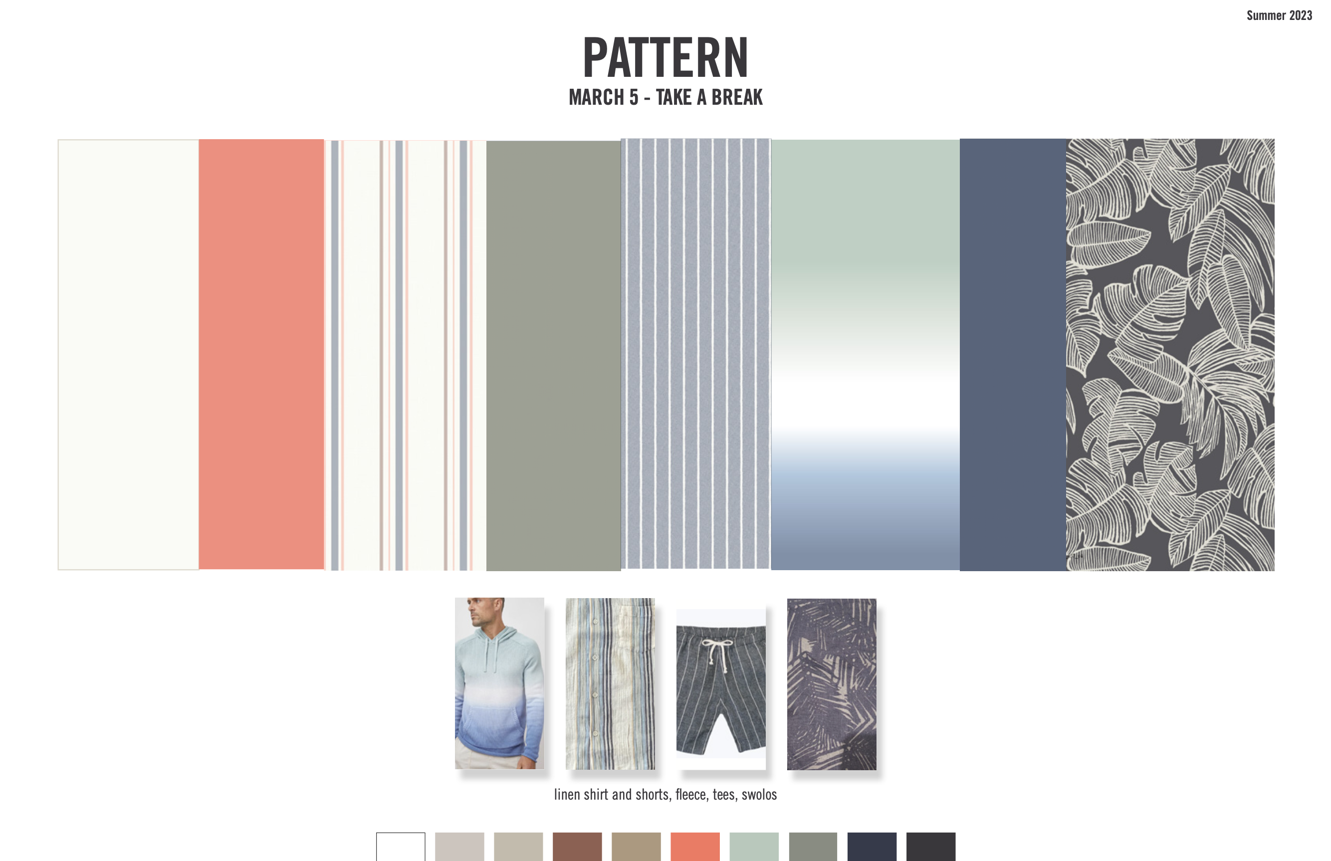 additionally, our concept team presented a page of the most important trend colors for the season, seen utilized in theme color palettes below.