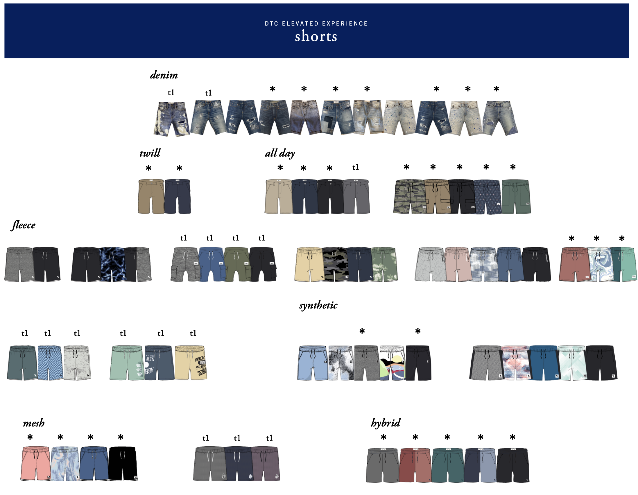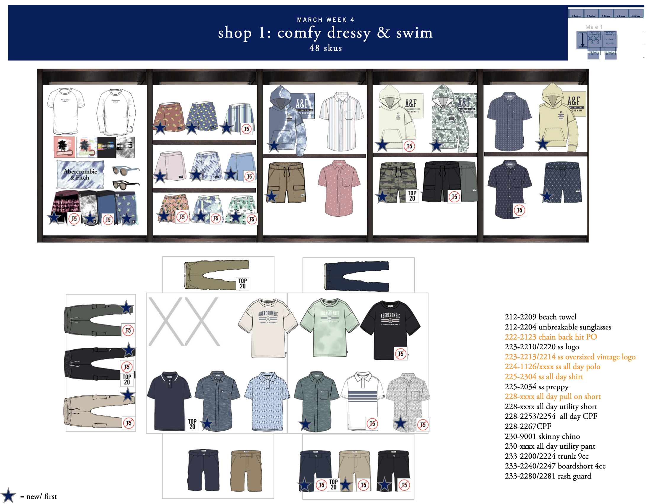 in addition to the store floorset documents, our visual team supplies us with a DTC view of certain ‘shops’ we are going after for the season; and in this case our shorts shop, for spring.